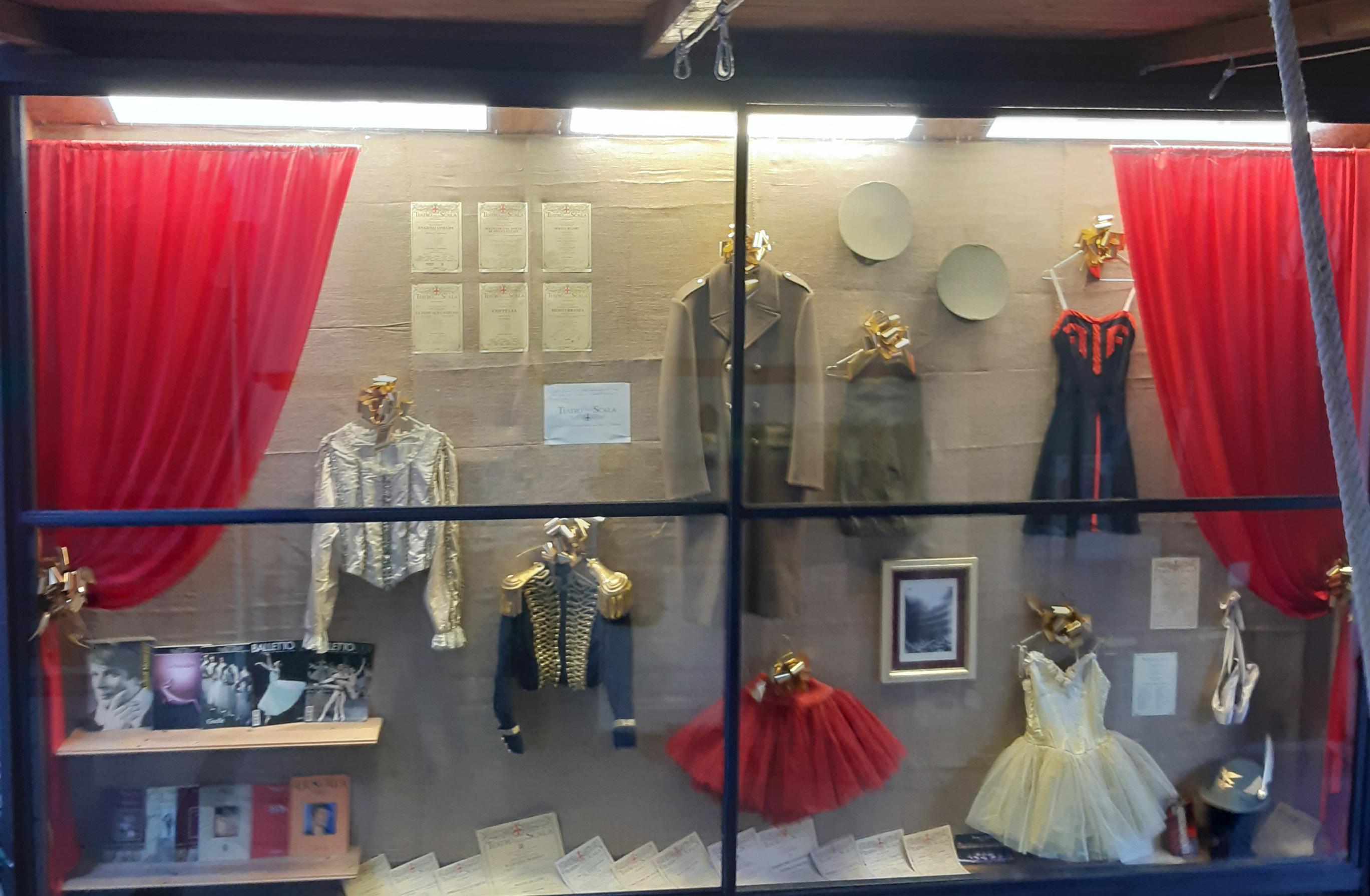 ESPOSIZIONE DEI CAPI D'ABBIGLIAMENTO forniti al Teatro nel 2023, proprio per i costumi di scena e alcuni altri per gli spettacoli rappresentati nel corso degli anni, proprio per il CORPO di BALLO.